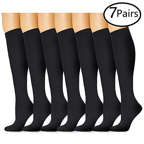 Además de ofrecer un tejido polivalente, que mezcla elastano, poliéster y nylon, estamos ante uno de los calcetines de compresión más baratos del momento, por su presentación en lote de 7 pares completos.