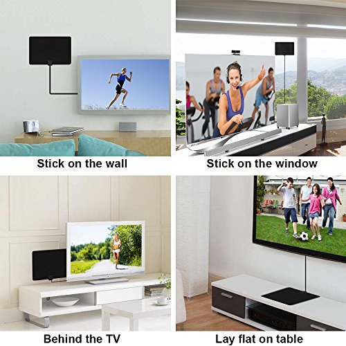 Este aparato ultra delgado y de perfil plano puede ser instalado fácilmente en cualquier zona del hogar y cuenta con un cable coaxial de 13 pies, para ofrecer mayor comodidad a los usuarios. Con este producto fue incluido un amplificador de señal desmontable, que puede aumentar eficientemente la antena a 15 millas de rango.
