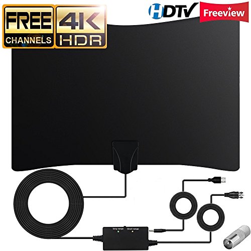 Es ultra plana y viene en color negro, adaptándose perfectamente a cualquier espacio sin que interfiera con otros aparatos, por lo que es adecuada para tener el ambiente donde la instales bien organizado. Esta antena de televisión digital terrestre posee un amplificador que alcanza un rango de recepción de hasta 80 kilómetros, por lo que garantiza un mayor número de canales con imágenes nítidas y en alta definición, mientras reproduce un buen sonido.