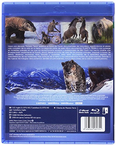 Además, los discos vienen insertos dentro de una caja de plástico duro y resistente, con una bonita portada que dispone imágenes del planeta y de animales, así como una ficha técnica detallada con una sinopsis de la temática del documental que en encuentra en la parte trasera de la caja.